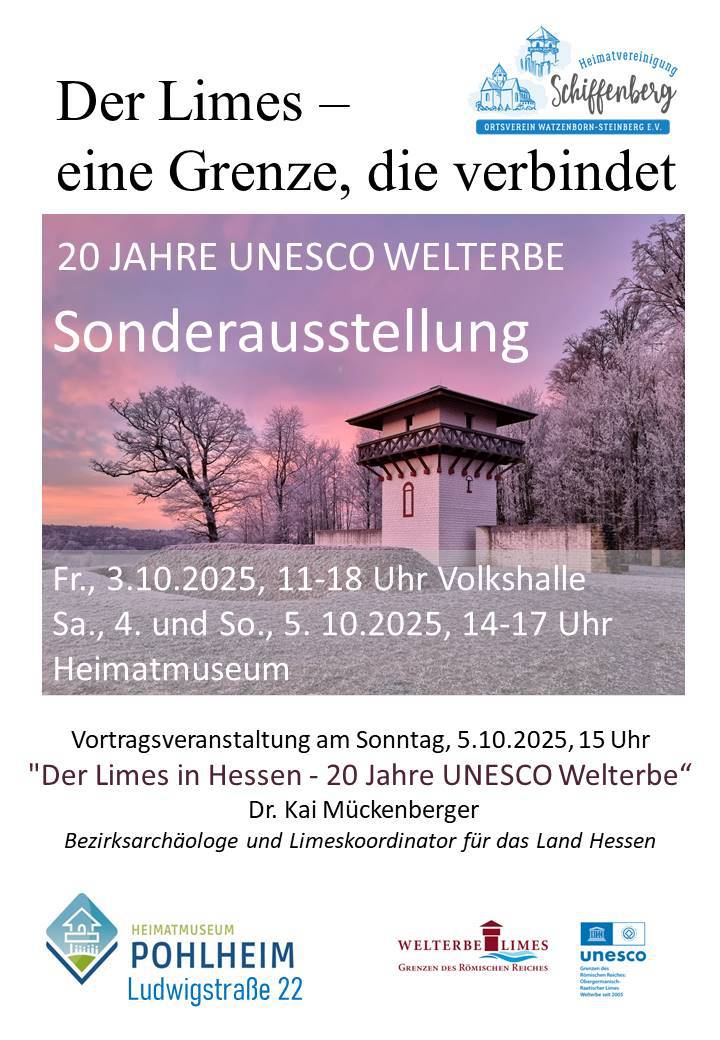 Die reich illustrierte Roll-Up-Ausstellung kommt vom 3. bis 5. Oktober 2025 nach Pohlheim-Watzenborn-Steinberg und lädt dazu ein, die faszinierende Limes-Geschichte neu zu entdecken. Im Mittelpunkt stehen die archäologischen Stätten entlang der 550 Kilometer langen Grenzlinie zwischen Rhein und Donau. Diese trennte einst das römische Imperium von den „Barbaren“.