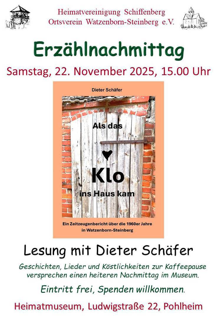 Weitere Termine und aktuelle Informationen finden Sie zeitnah in den Pohlheimer Nachrichten und auf unserer Internetseite www.hv-schiffenberg.de sowie www.heimatmuseum-pohlheim.de |